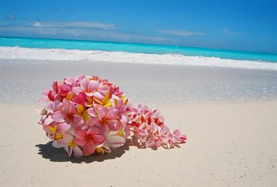 which features beautiful exotic Hawaiian flower bouquets such as plumeria {frangepanis}