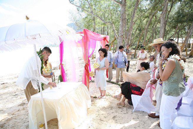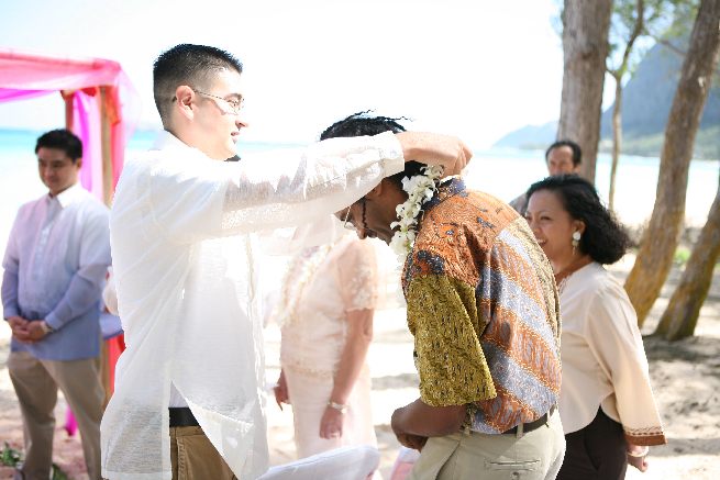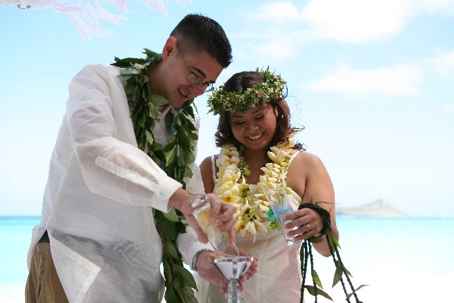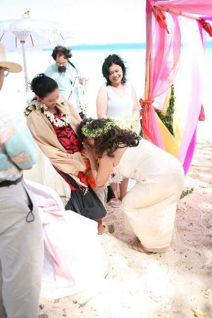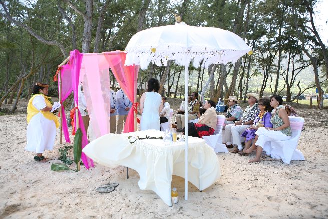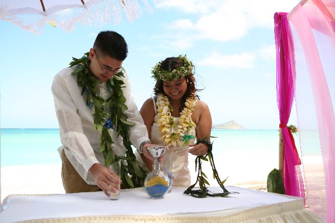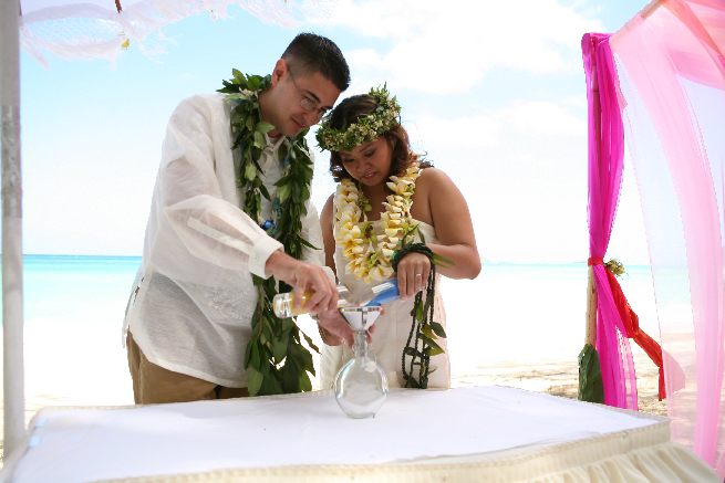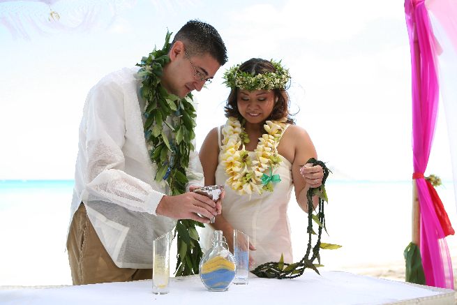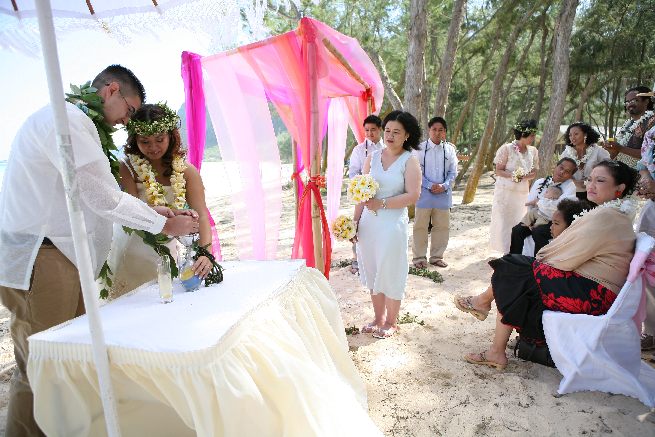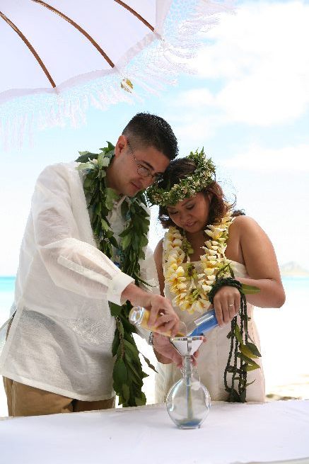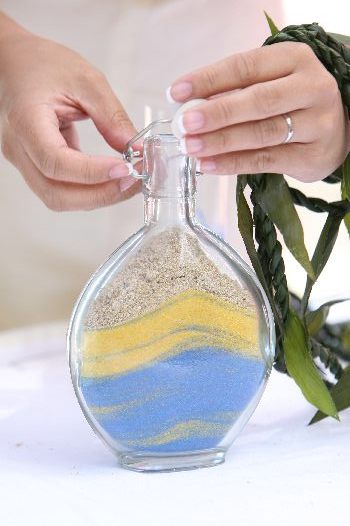 Ceremony : Sand , Lei , Hawaiian blessing, tea leaf prayer |