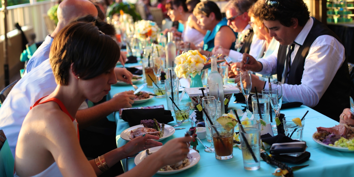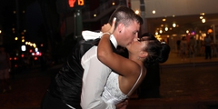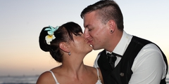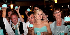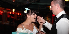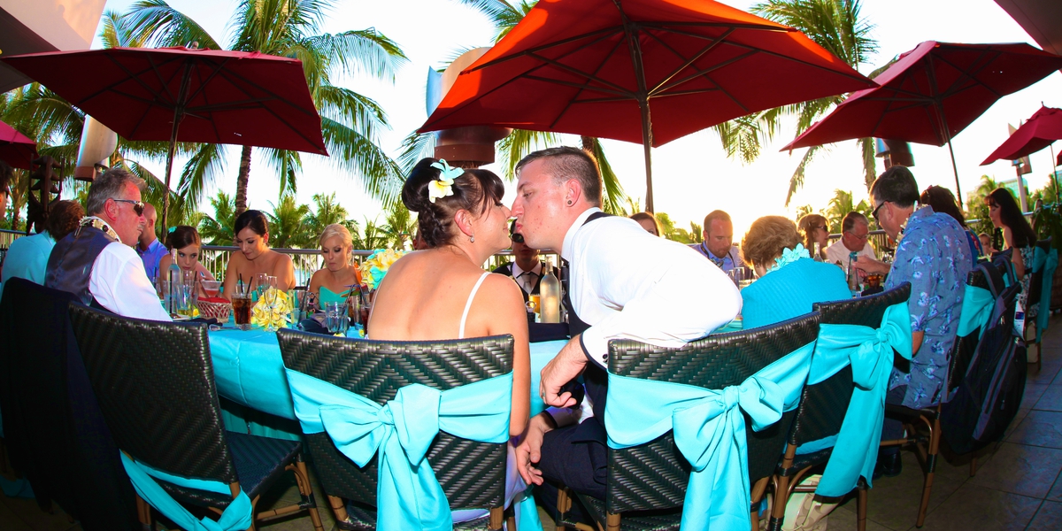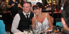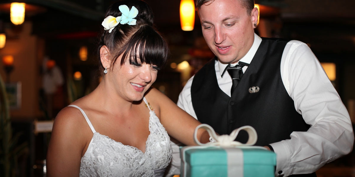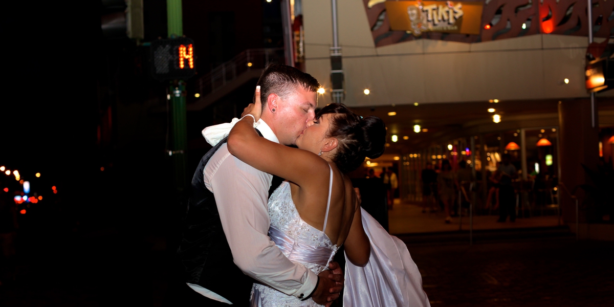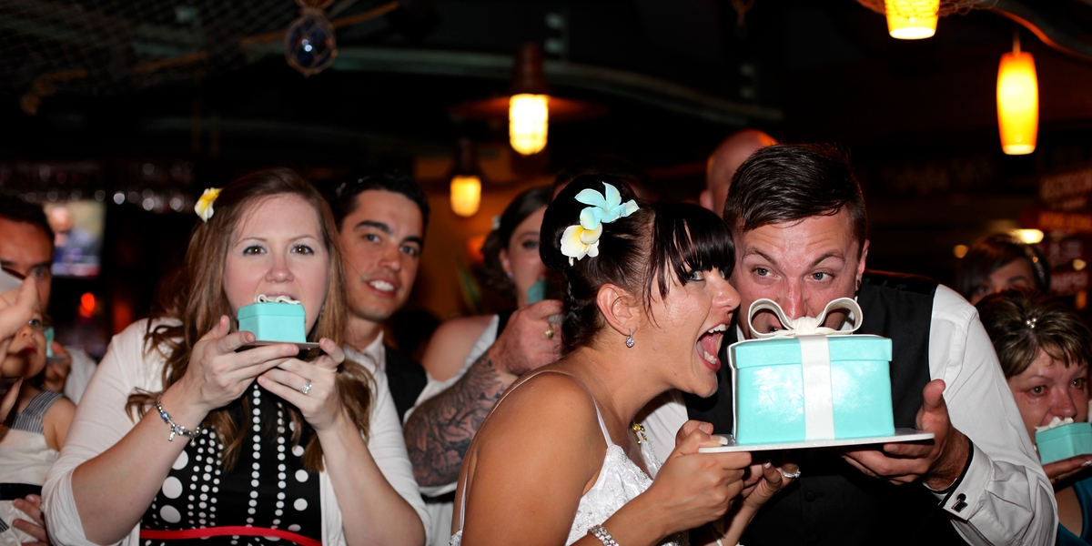 The Groom takes over the Mike and Guitar at Tiki's to play his Wife a song